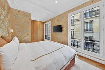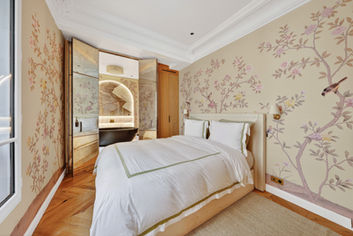 Discover the experience of an exceptional property, both elegant and ideally located in the heart of the Golden Triangle, just steps from the prestigious Avenue Montaigne. Completely renovated under the direction of renowned architect Michael S. Smith, this unique apartment subtly blends contemporary elegance with historic charm.